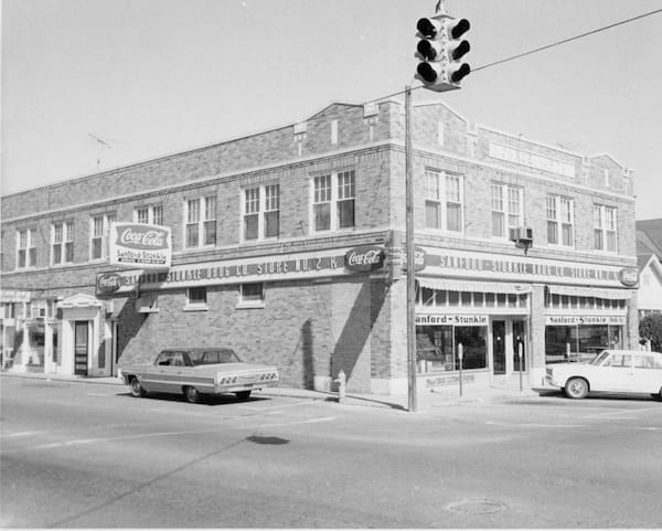 The building was originally the Monroe Apartments. Sanford & Stunkle Drug #2 was located there for a period of time and it was also home to The Bike Shop for many years.