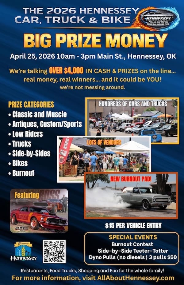 Take your friends, bring your family, and come spend the day in Hennessey. It’s going to be loud, busy, and a whole lot of fun.