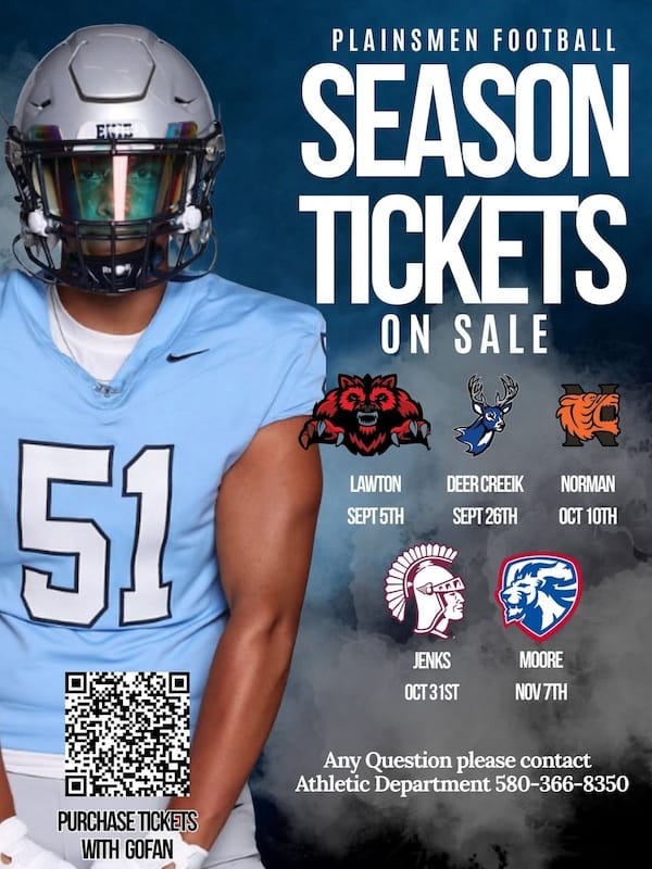 Plainsmen Football Season Tickets are on Sale! Purchase Tickets with GOFAN. QR Code is on the image.
